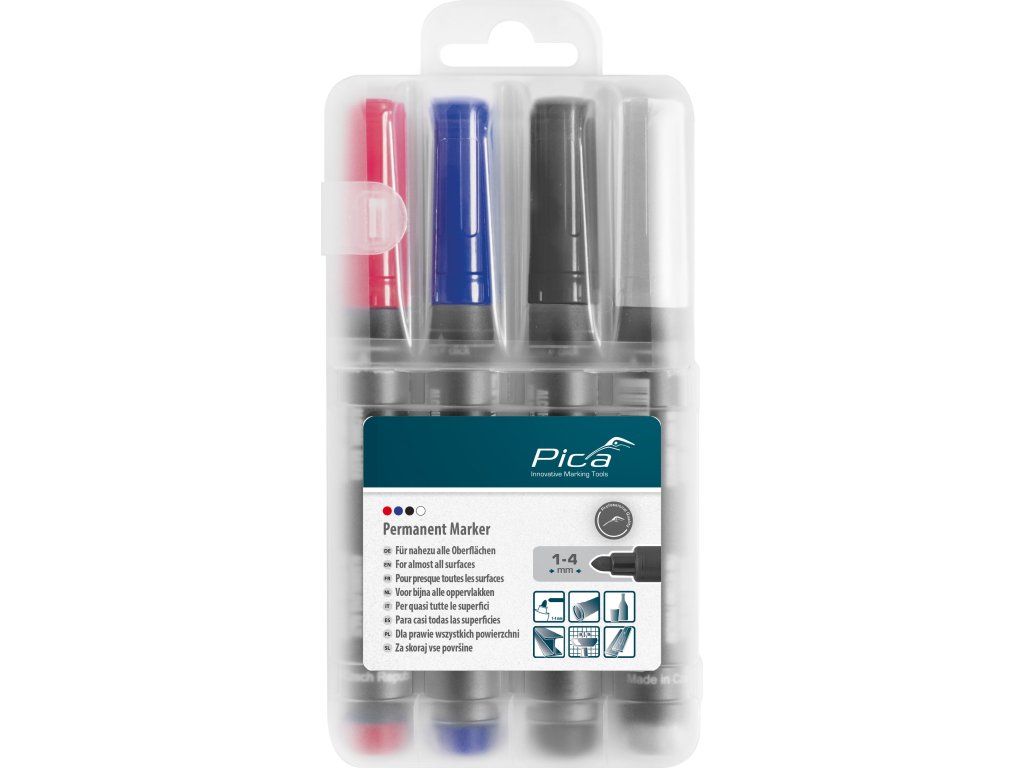 Sada 4 značkovačov červenej, modrej, čiernej a bielej farby.