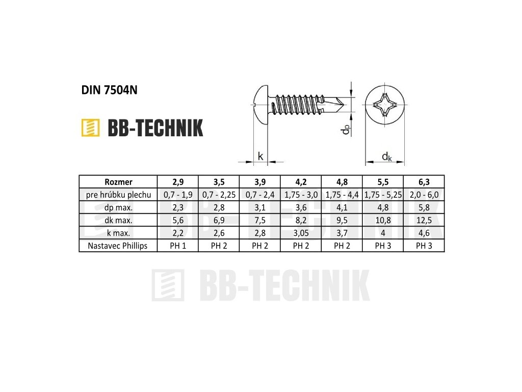 Kategória: | Samorezky do kovu s vrtákom s polguľatou hlavou na kríž DIN 7504N |