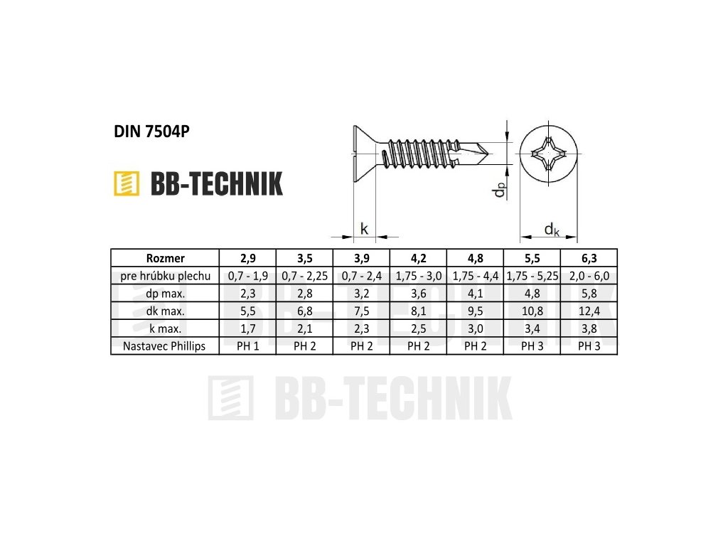 Kategória: | Samorezky do kovu s vrtákom so zapustenou hlavou na kríž DIN 7504P |