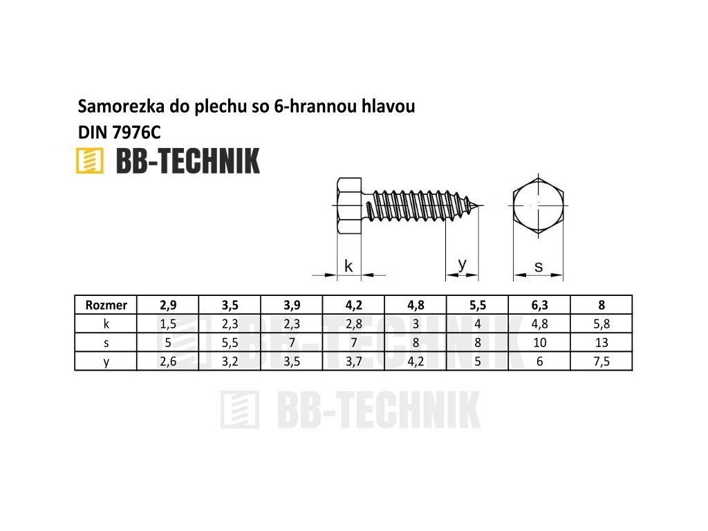 Kategória: | Samorezky do kovu so 6-hrannou hlavou DIN 7976 |