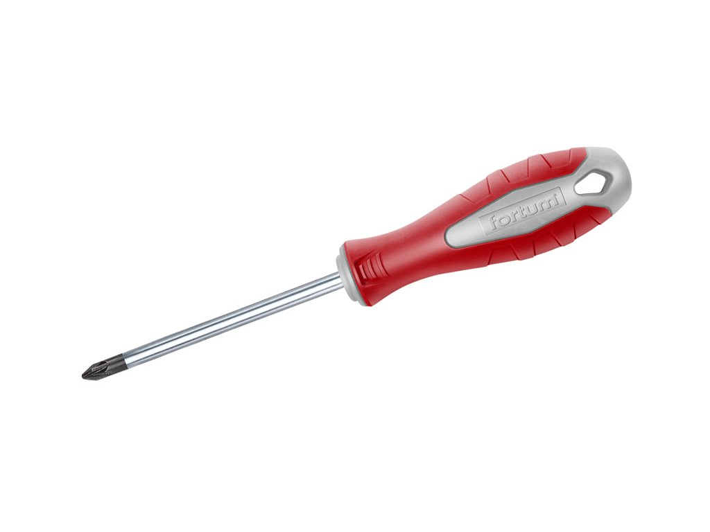 FORTUM Skrutkovač plochý má ergonomicky tvarovanú rukoväť z tvrdého PP plastu, na povrchu mäkčená kvalitnou protisklzovou TPR gumou, pre zvýšenie krútiacej sily skrutkovača