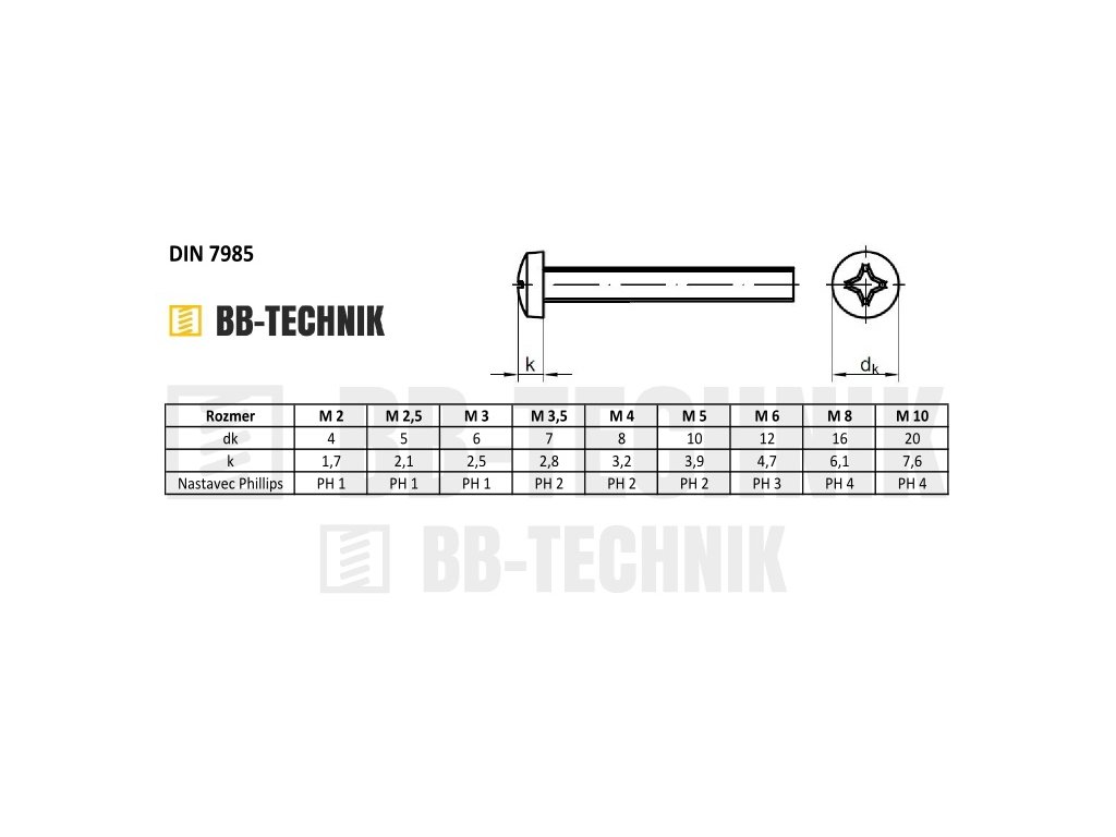 Kategória: | Skrutky s polguľatou hlavou na kríž DIN 7985 |