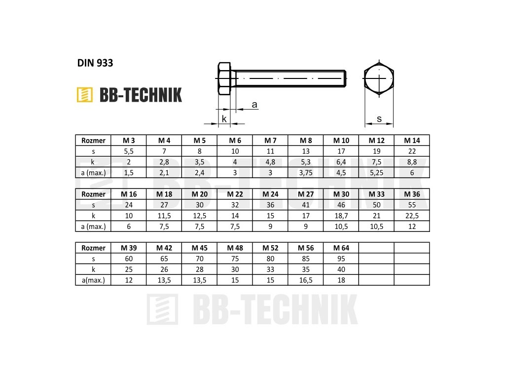 | Kategória: | Skrutky so šesťhrannou hlavou s celým závitom DIN 933 |