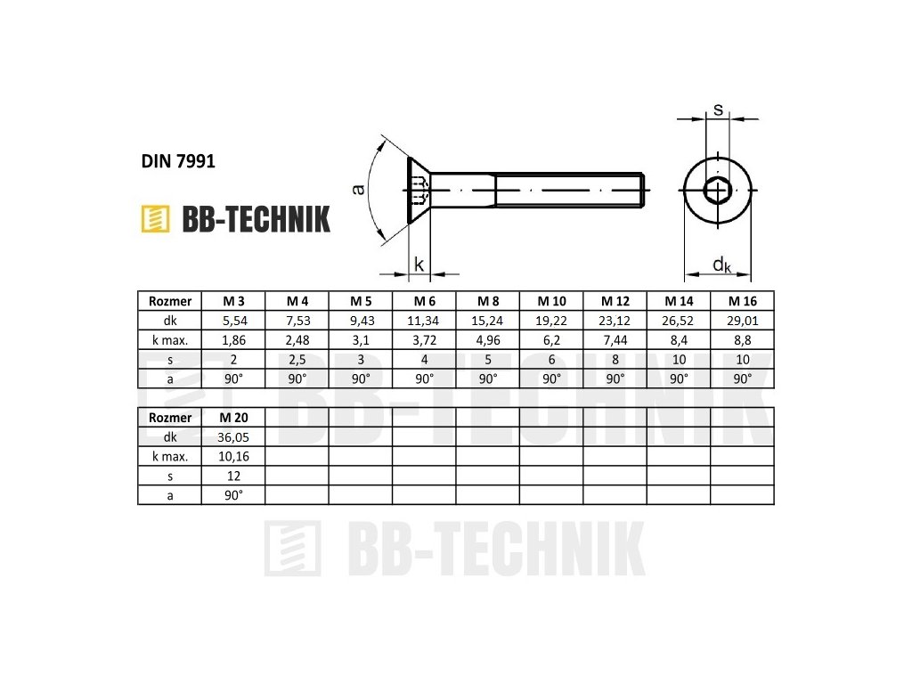 | Kategória: | Skrutky so zapustenou hlavou na imbus DIN 7991 |