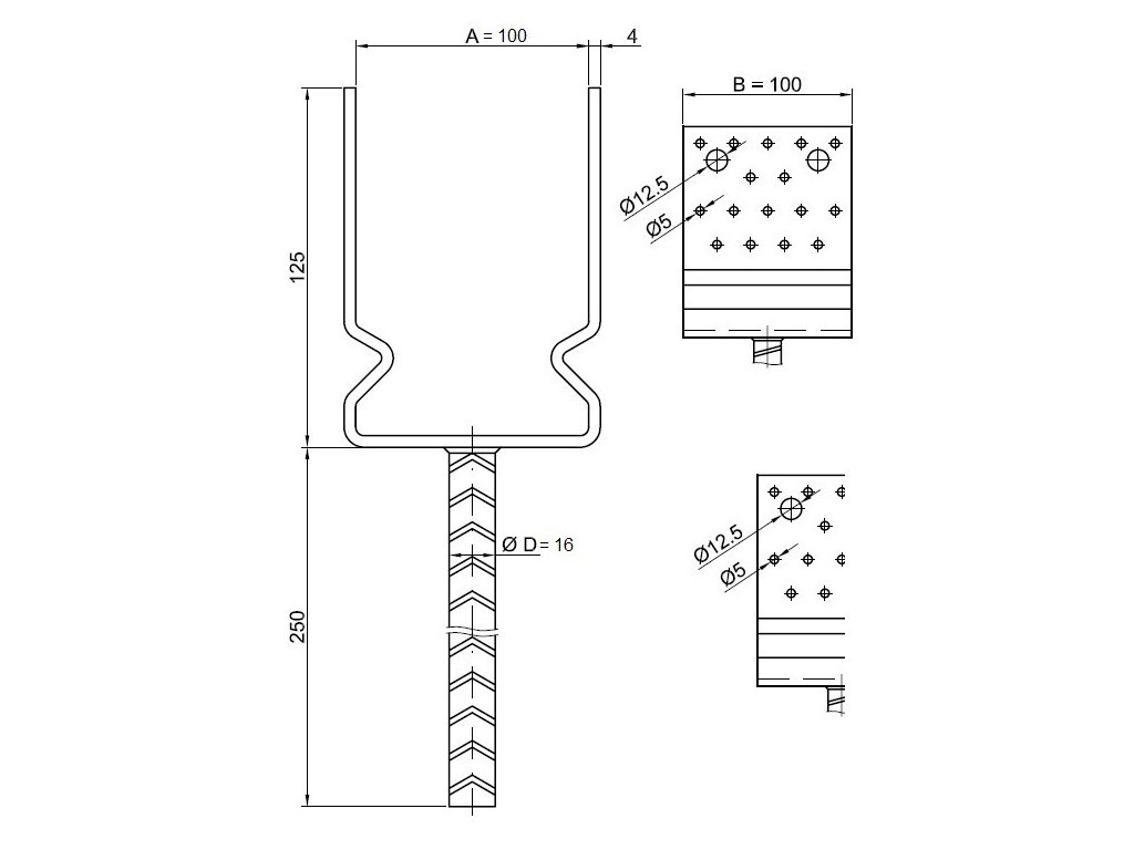 Pätka kotevná 100x100 U s roxorom a dorazom