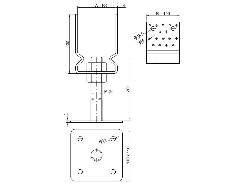 Pätka kotevná 100x100 U výškovo nastaviteľná
