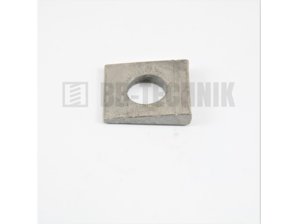 Štvorhranné skosené podložky sa používajú na podloženie skrutiek na nosníkoch so zošikmeným profilom.