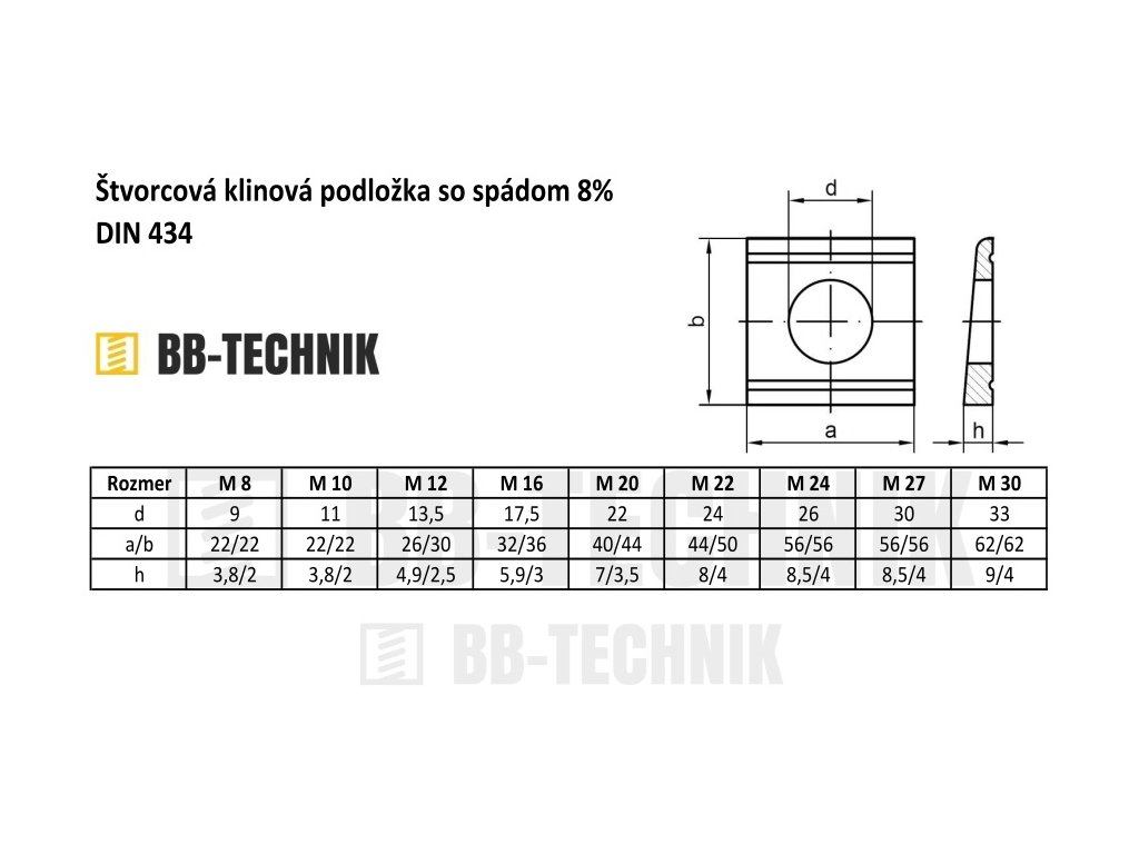 Kategória: | Štvorcové podložky skosené 8% DIN 434 |
