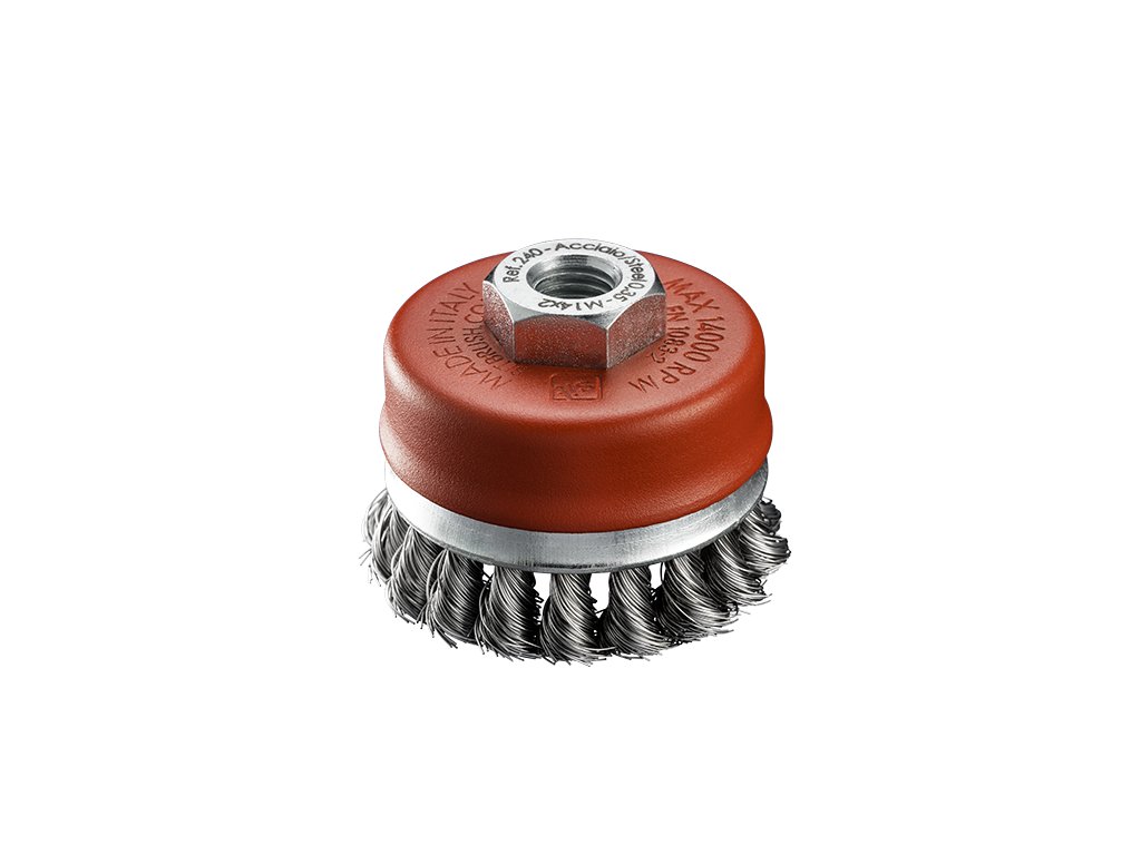 Hrnčekový vrkočový kartáč pre uhlové brúsky.