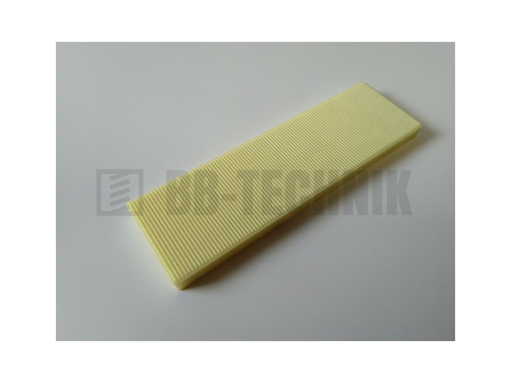 Dištančné podložky sa používajú ako podložná pomôcka pri rôznych montážnych prácach, napríklad pri zasklievaní okien a pod. Sú dostupné v hrúbkach 1-6 mm.