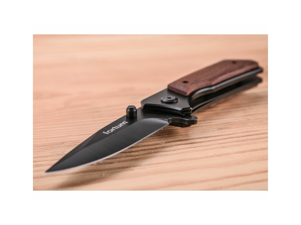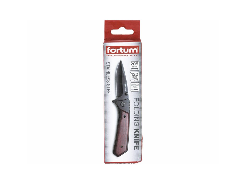 FORTUM Nož zatvárací s poistkou 205mm, rukoväť z Pakka dreva