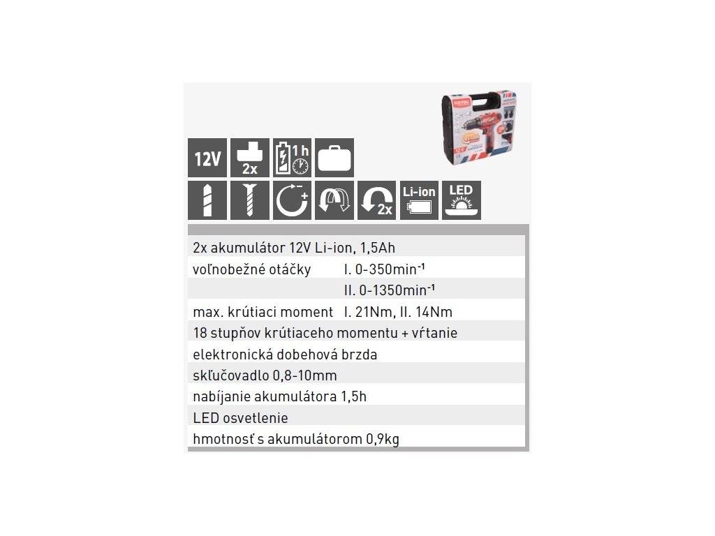 Skrutkovac AKU EXTOL 2x12V Li-ion 1500mAh kufor