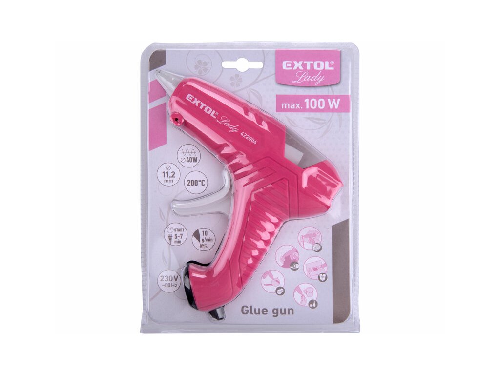 Tavná pištoľ lepiaca 100W ružová pre tav.tyčinky pr.11,2mm EXTOL