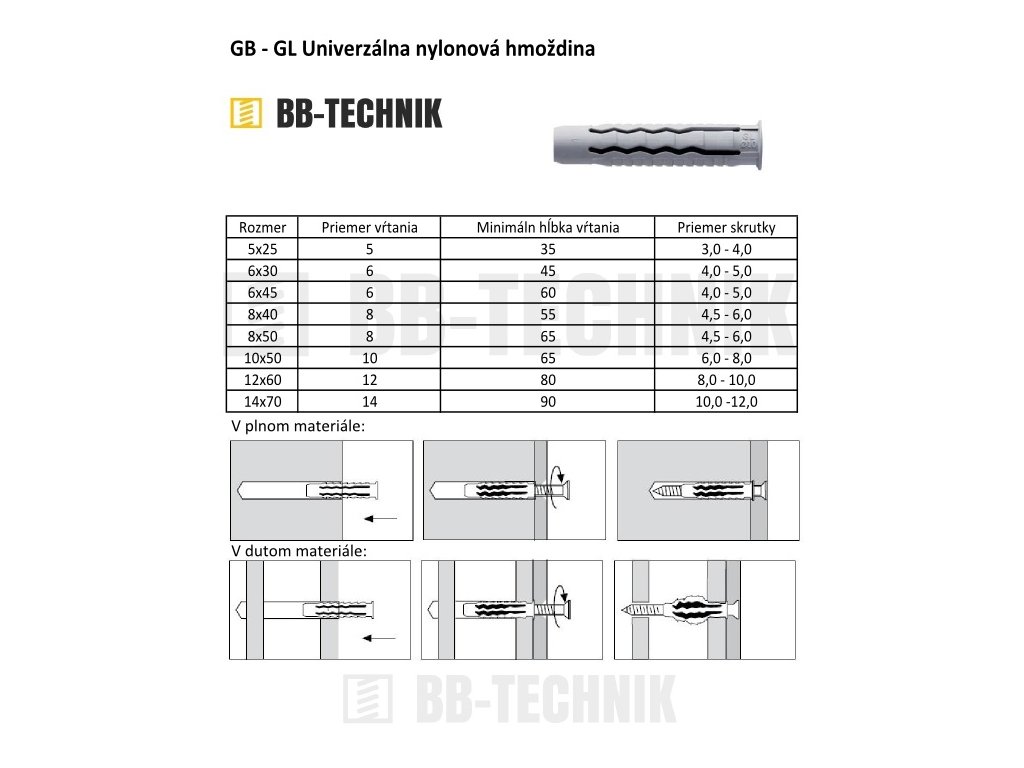 GB GL 12x60 hmoždina nylonová univerzálna