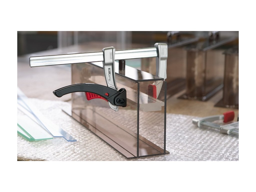 Upínacia sila až 1 200 N. Rýchle upnutie bezpečné voči vibráciám. Stabilná pevná a posuvná tyč z ľahkého horčíka.