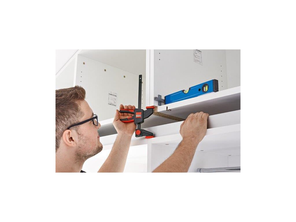 Bessey svorka má kvalitnú plastovú ergonomickú dvojkomponentnú rukoväť s pákou posuvu a je bezpečne ovládateľná z