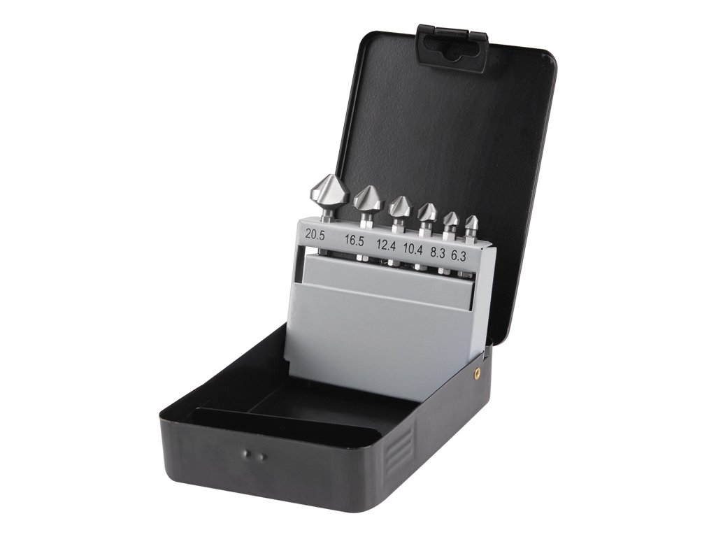 Záhlbníky 6-dielna sada, 6,3-8,3-10,4-12,4-16,5-20,5mm, trojbritá hlava, 1/4“ šesťhranná stopka.