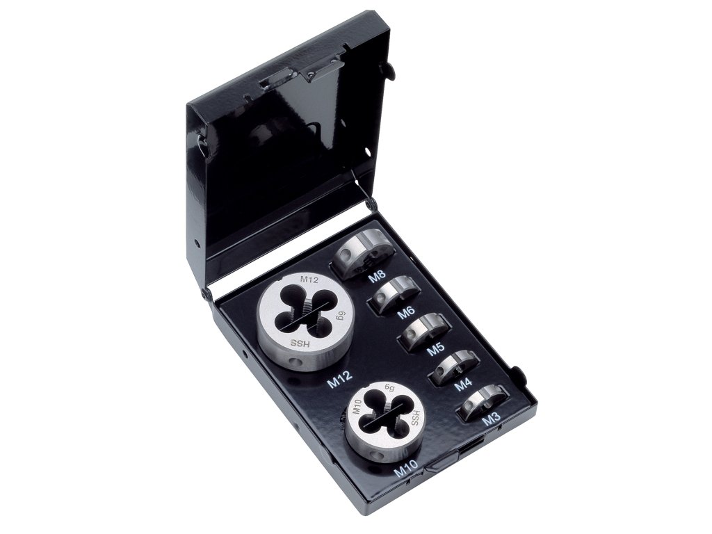 Závitorezné očká nemeckého výrobcu VOELKEL, 7-dielna sada, M3-4-5-6-8-10-12. Závitové očká sú vyrobené z kvalitnej nástrojovej ocele. Sada je zložená z najpredávanejších veľkosti závitov M3-M12. Sada je balená v púzdre pre jednoduchú manipuláciu a transport.
